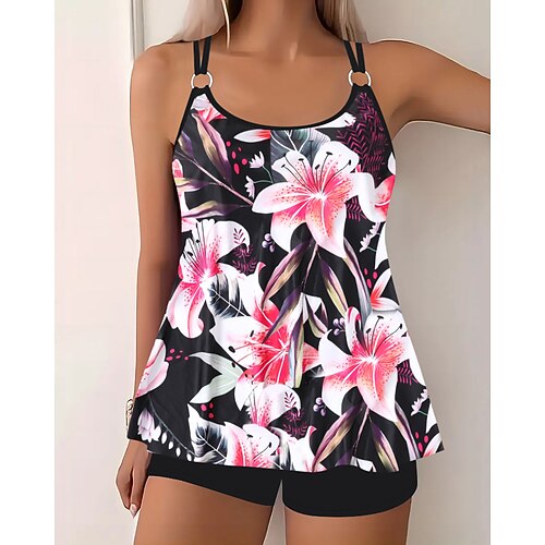 Per donna Costume da bagno Tankini Costume da bagno a due pezzi Floreale Tropicale Elastico Senza Maniche Costume da Bagno Controllo della Pancia Surf Spiaggia Vacanze Estate