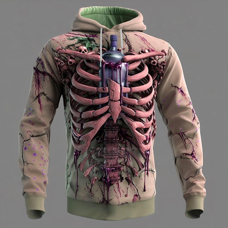 Men's 3D Skeleton Hoodie Sweatshirt Punk Exaggerated Gothic Casual Long Sleeve Crew Neck Hooded Club Streetwear Red Blue Green Drawstring Fall Winter Designer S M L XL XXL XXXL