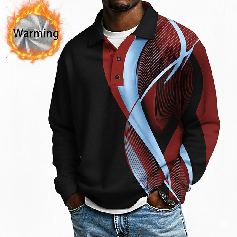Men's Geometic Line Polo Shirts Themmal Shirts Long Sleeve Polo Shirts Lapel Casual Athleisure Holiday Daily Wear 3D Print Spring Fall Winter Blue Black Red