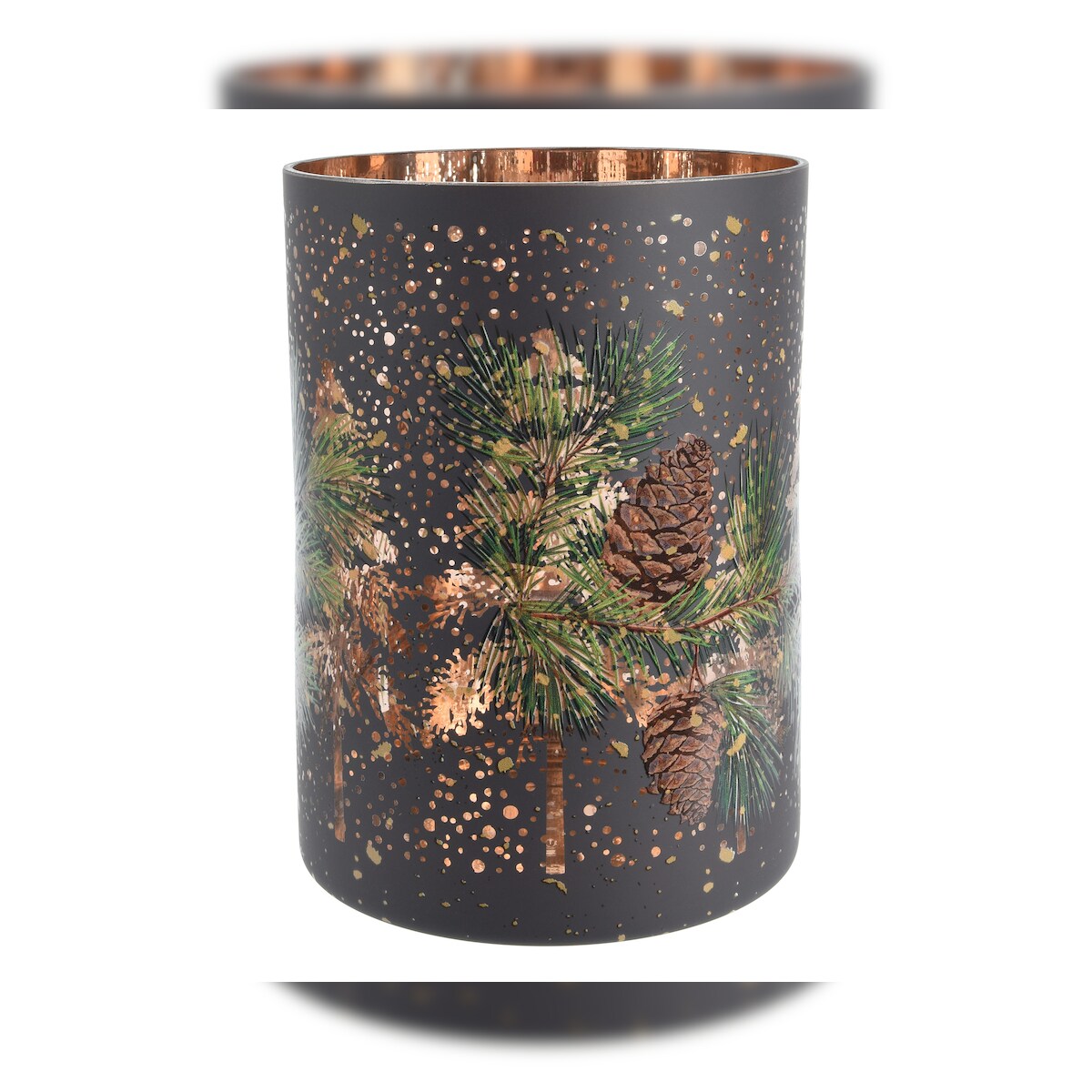 Christmas Decorations 1 Teelichthalter Glas 12,5cm Teelichtglas mit Tannenzweigen & Zapfen Motiv Kerzenglas für Teelichter Windlicht Kerzenhalter Dekoglas Windlichtglas