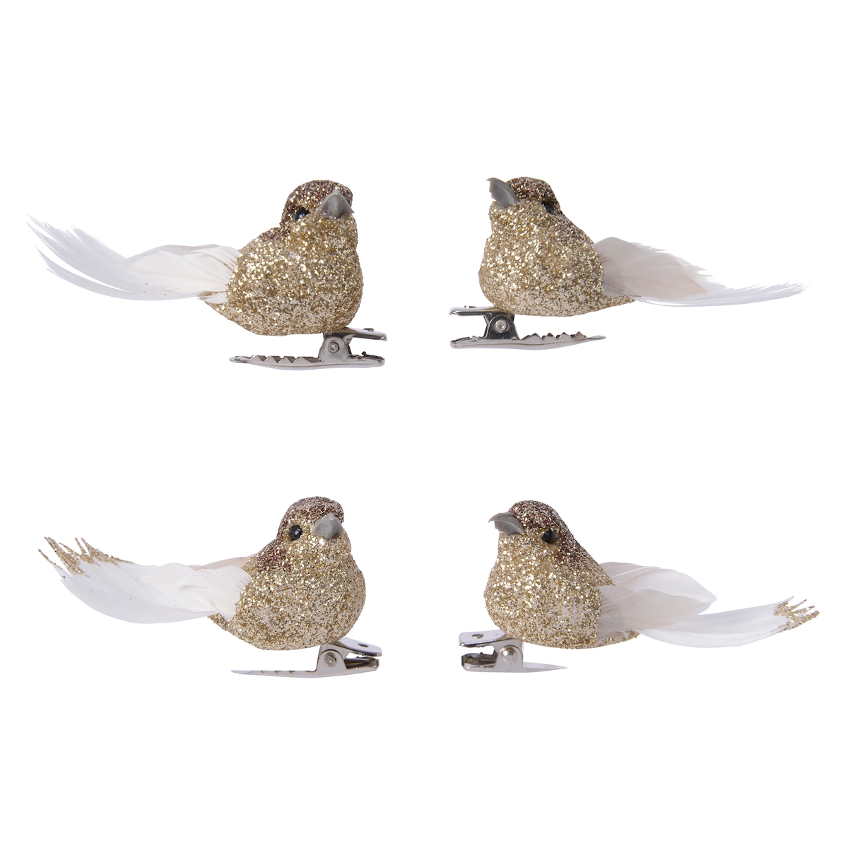 Christmas Decorations 4x Christbaumschmuck Kunststoff Vögel mit Federn & Clip 5cm - Vogel Figuren auf Klammer Weihnachtsbaumschmuck Weihnachten Dekovögel bruchfest Gold