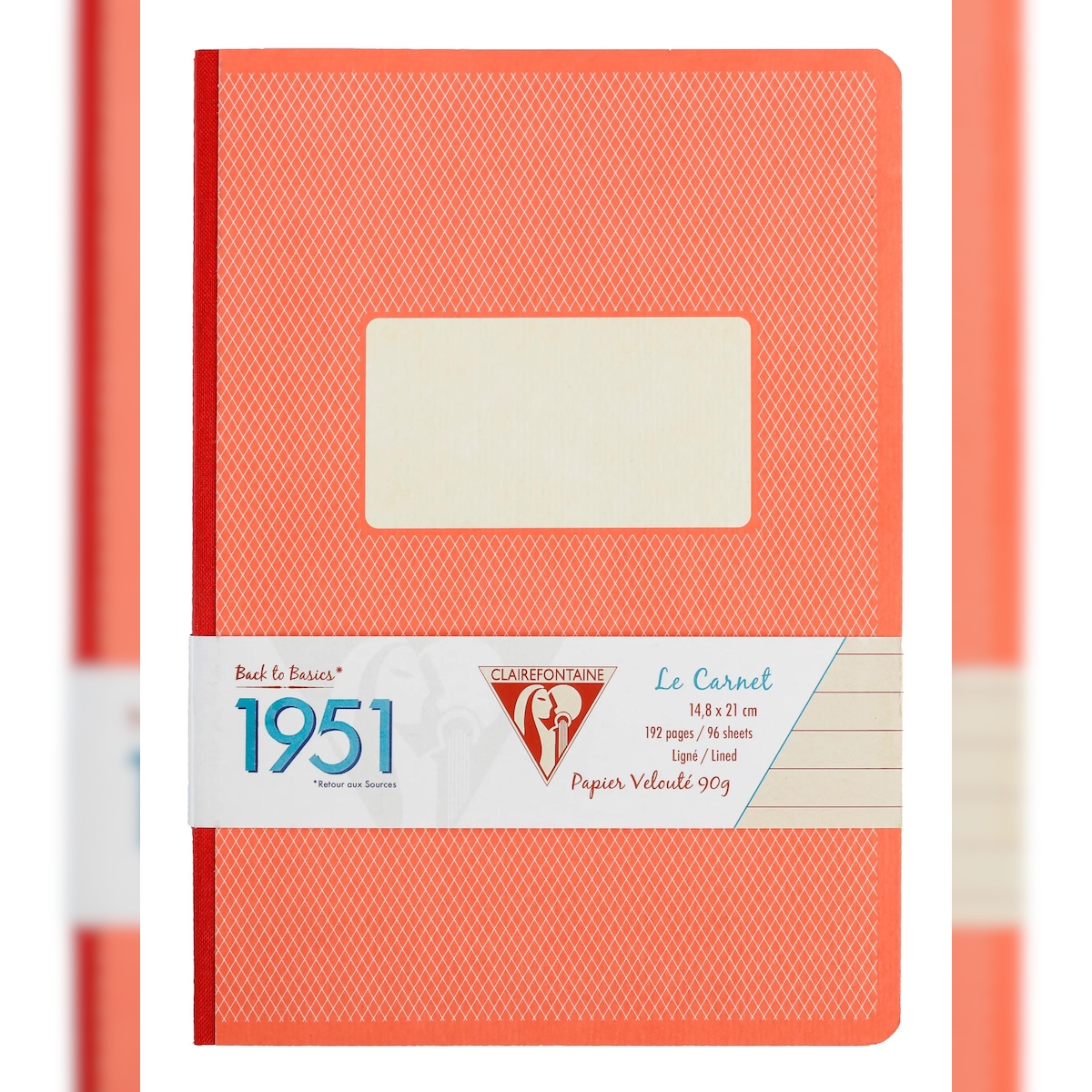 Clairefontaine 5x Kladde 1951 Back to Basics DIN A5 14,8x21cm, 96 Blatt 90g, liniert - Korallenrot 195446C