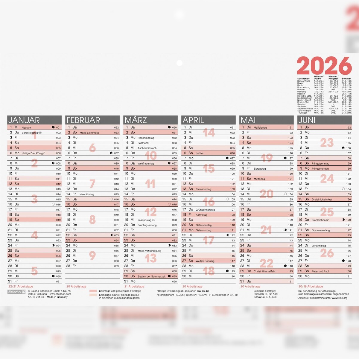 2026 Brunnen Tafelkalender A4 quer 4061947141870