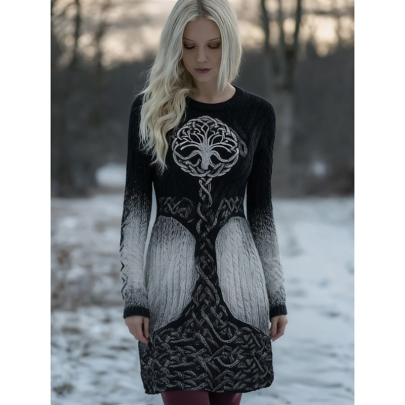 Christmas Women's Knee Length Dress Sweater Dress Elegant Vacation Casual Holiday Regular Fit Graphic Geometric Long Sleeve Crew Neck High Neck Black Fall Winter