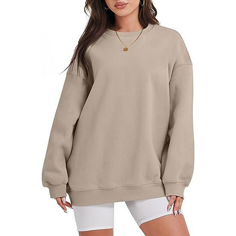 Women's Pullover Sweatshirts Plain Fashion Classic Modern Long Sleeve Crew Neck Regular Tops Street Dailywear Silver Black White Pink Sky Blue Spring Fall