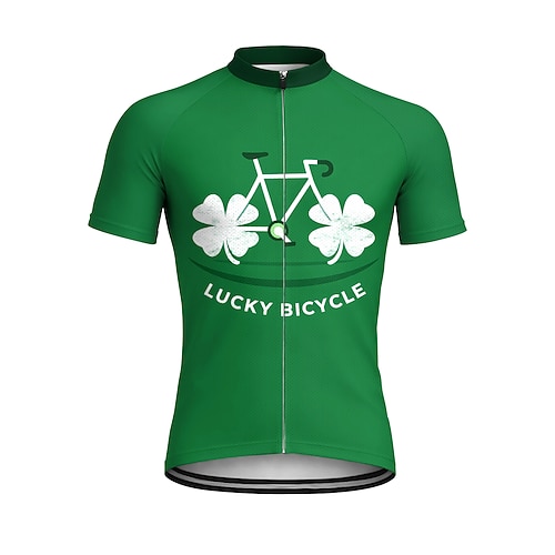 Per uomo Maglia di San Patrizio Maglia da Ciclismo Maglia da downhill Quadrifoglio Manica Corta Bicicletta Maglia Maglietta Top con 3 tasche posteriori Resistente ai Raggi UV Asciugatura Rapida Con
