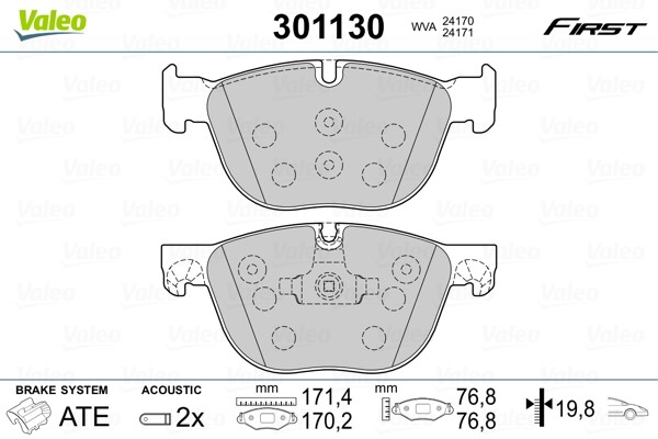 Jarrupalasarja, levyjarru, Etuakseli Valeo 301130 - bmw - OE 34 11 2 413 068, 34 11 4 074 370, 34 11 6 778 403