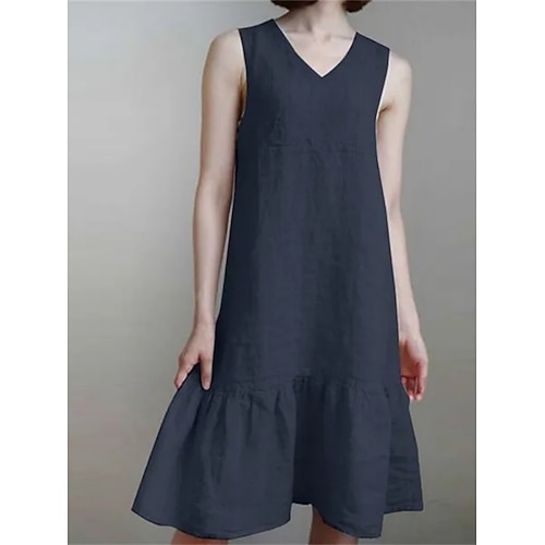 Per donna Abito Midi Abiti in cotone e lino Abito a Tubino Vestito Estivo Vestito Casual Moda Essenziale Moderno Quotidiano All'aperto Vacanza Vestibilità regolare Vestibilità comoda Semplice Senza
