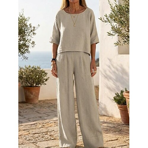 Per donna Set di biancheria in cotone Set di Pantaloni Bolero Top Manica Corta Girocollo Semplice Moda Streetwear Quotidiano All'aperto Spiaggia Nero Giallo Grigio chiaro Estate Vestibilità comoda