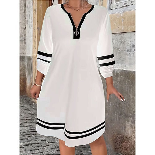 Per donna Mini Abito Abito a trapezio Abito Estivo Casual Quotidiano Vestibilità comoda A righe Manica 3/4 Scollo a V Nero Bianco Estate Primavera Autunno