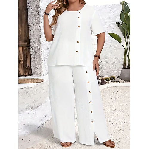 Per donna Set di Pantaloni Bolero Top Manica Corta Girocollo Semplice Arricciato Patchwork Spacco sulla Coscia Elegante Moda Streetwear Casuale Quotidiano All'aperto Bianco Estate Vestibilità comoda