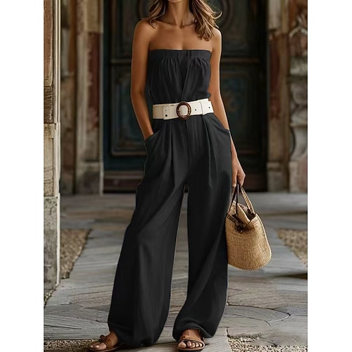 Per donna Normale Tuta Vacanza Tinta unica Senza Maniche Gamba larga Senza Spalline Tasca Streetwear Ferie Vestibilità comoda Blu Nero Bianco Estate