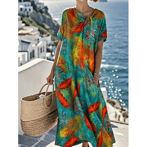 Per donna Abito Midi Abito da Spiaggia Vestito Casual Abito Floreale Elegante Moda Moderno All'aperto Vacanza Uscire Vestibilità comoda Geometrico Manica Corta All'americana Blu Verde Azzurro Estate