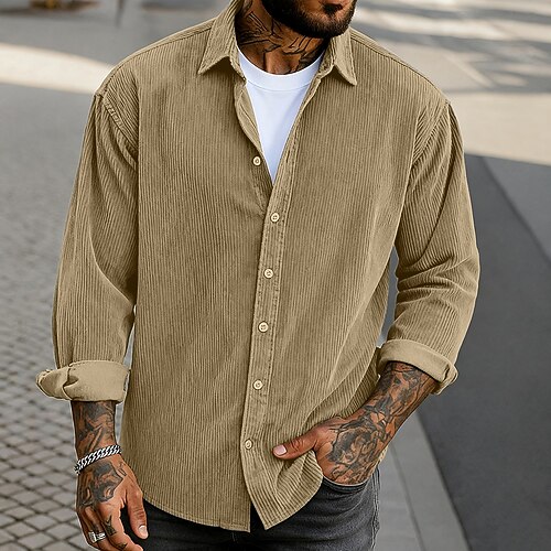Per uomo Camicia Camicia casual Camicia di Velluto a Coste Camicia con Bottoni Nero Kaki Verde militare Grigio Manica Lunga Tinta unica Collo ripiegato Casuale All'aperto Caldo Abbigliamento Vintage