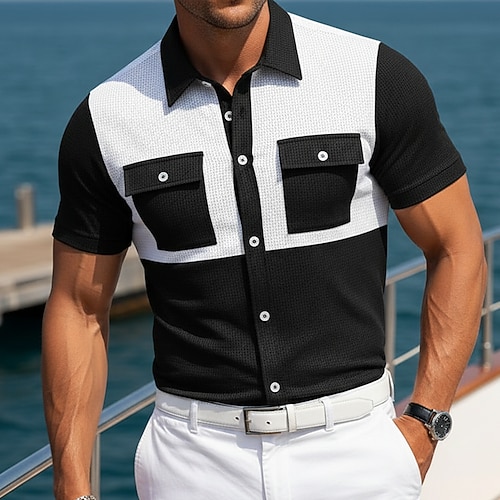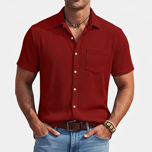 Per uomo Camicia Camicia a nido d'ape Tessuto Camicia casual Camicia con Bottoni Nero Borgogna Verde militare Grigio Manica Corta Semplice Colletto a Camicia Casuale Quotidiano Tasca Frontale