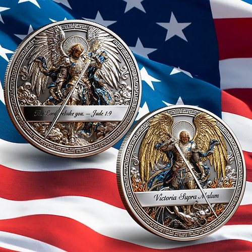 San Michele Arcangelo – moneta commemorativa vittoria sul male, oggetto da collezione religioso cristiano, moneta con preghiera dell'arcangelo Michele, souvenir commemorativo della fede per i