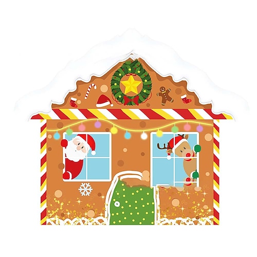 bandiera natalizia a forma di casetta di pan di zenzero, decorazione per feste nel bagagliaio dell'auto, striscione per feste all'aperto, poliestere 100d tagliato al laser