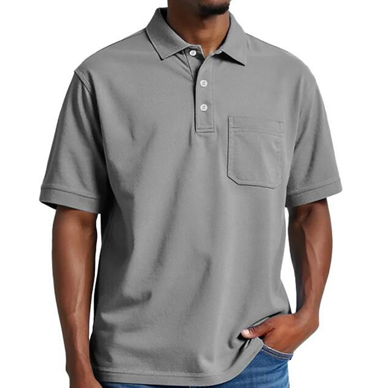 Men's Golf Shirt Golf Polos Shirts Work Casual Lapel Short Sleeve Basic Modern Plain Pocket Buttons Summer Regular Fit Black White Light Green Red Navy Blue Light Purple Golf Shirt