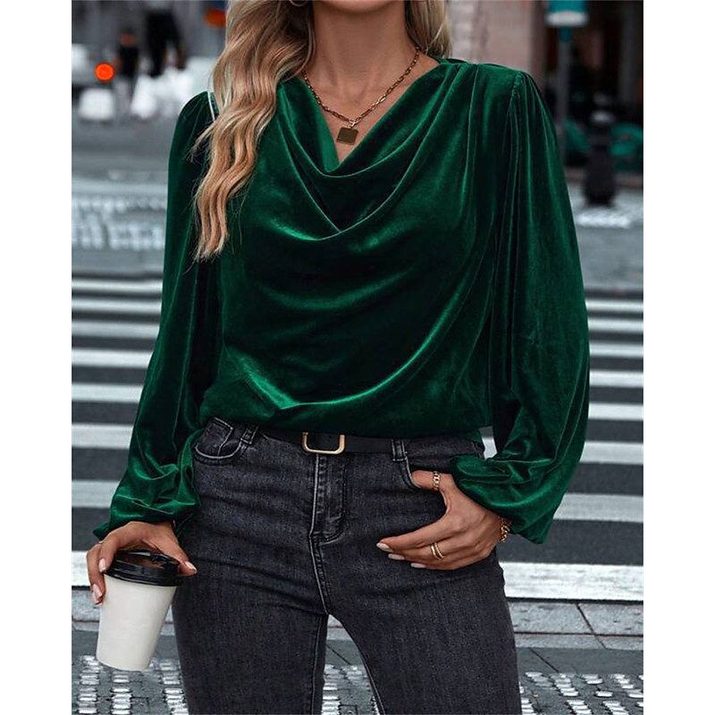 Women's Velvet Elegant Dressy Blouse Solid Color Plain Elegant Ladies Stylish Long Sleeve Halter Neck Regular Tops Work Daily Holiday Ruched Draped Black Wine Royal Blue Purple Green Fall Winter