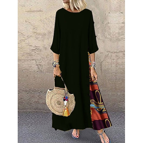 Abito lungo in lino sintetico da donna in cotone lino abito dritto casual da giorno vestibilità ampia floreale grafico maniche 3/4 collo a giro nero giallo rosso viola estate primavera