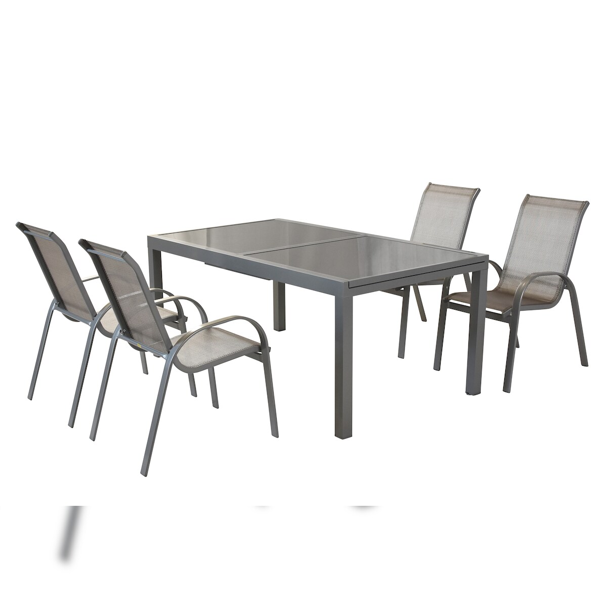 Merxx Amalfi Set 5tlg., 4 Stapelsessel, Ausziehtisch 160 (220) x 90 cm, silber/diamantbraun, Aluminium/Textil