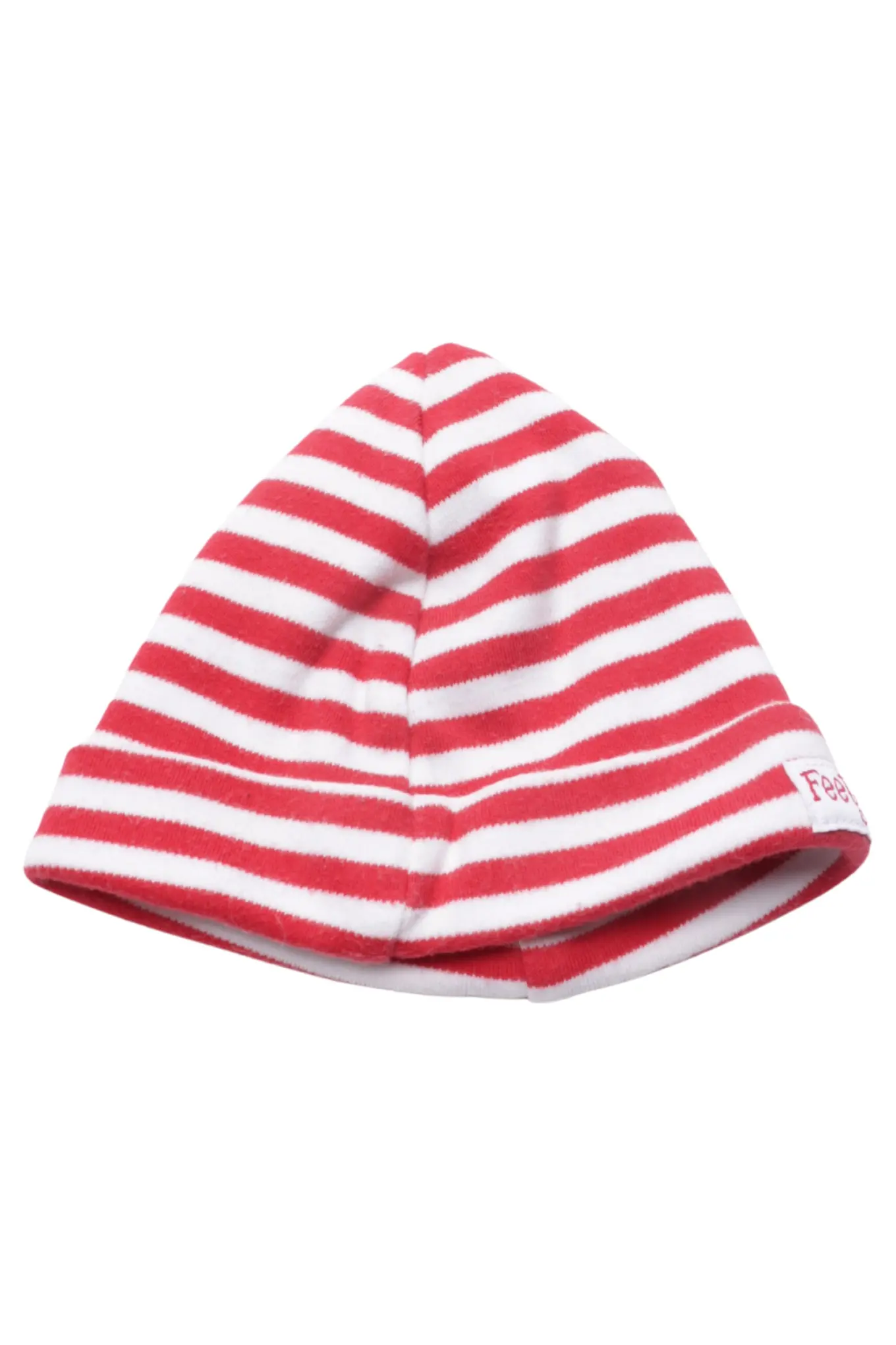 FEETJE Kinder Mütze Uni Rot Weiß Gestreift Baumwolle