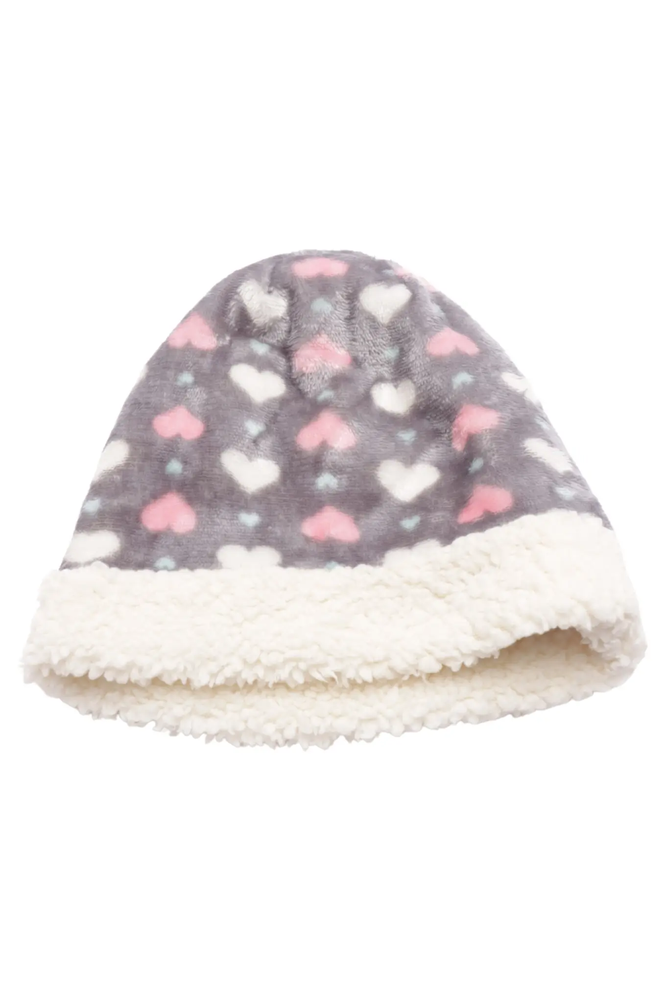 INFINITY Kinder Mütze Uni Grau Herz-Muster Kuschelig Winter 23cm