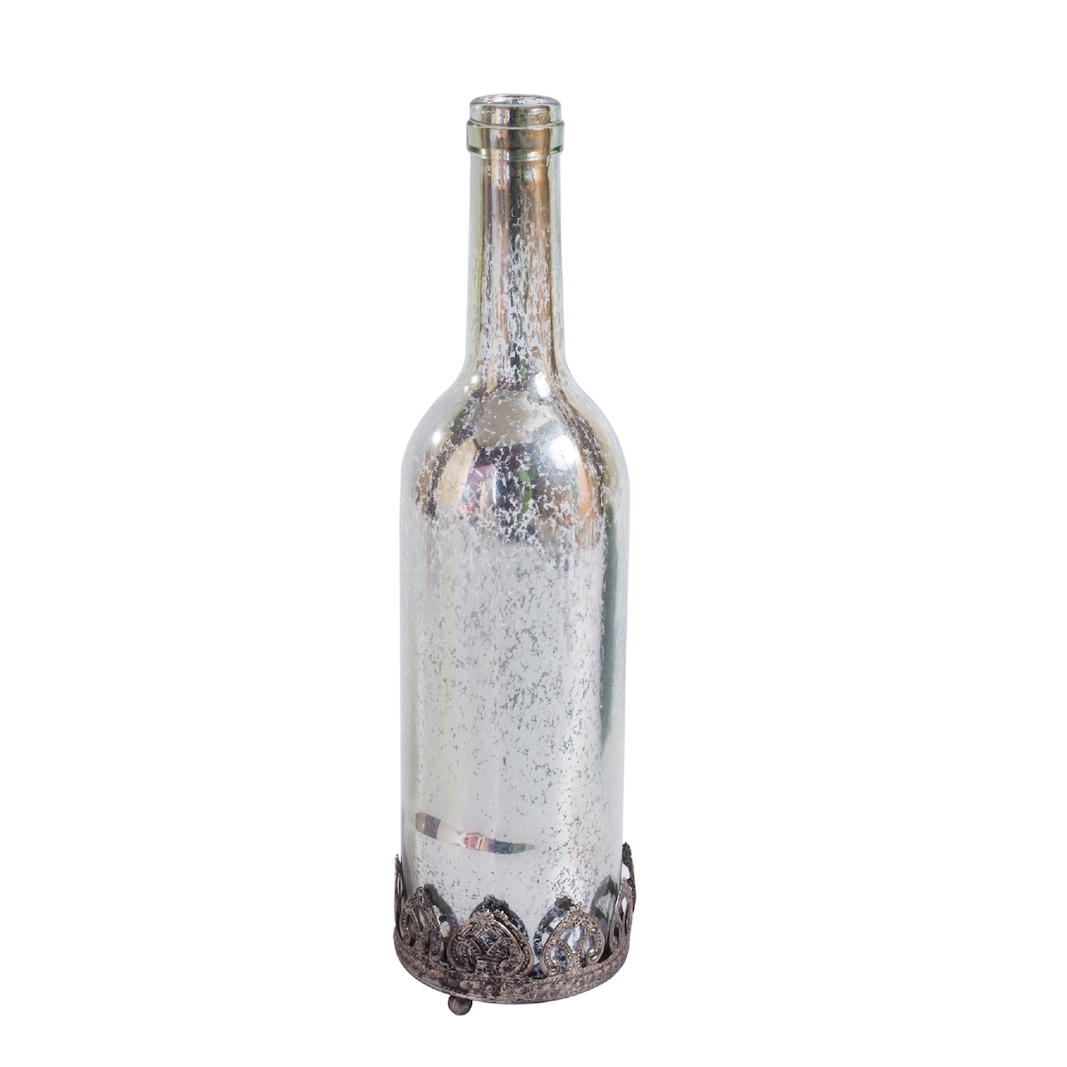 H&D Manufaktur Jinfa Glas Lichterflasche in Silber mit LED Beleuchtung Ø 8 cm, Höhe 29cm
