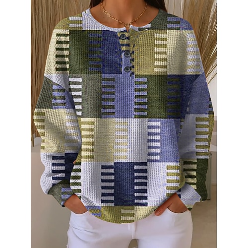 Per donna Felpa Pullover Grafico Geometrico Moda Casual Stampa Manica Lunga Girocollo Top Regolari Casuale Casa Lavoro Bottoni Blu Giallo Viola Primavera Autunno