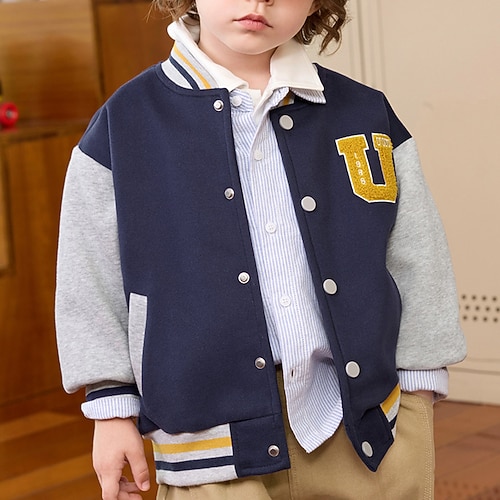 Kinder Unisex Baseball-Jacken Oberbekleidung Farbblock Langarm Comfort Knöpfe Weich Mantel Outdoor Mode Täglich Blau Grau Frühling Herbst Ab 4 Jahren