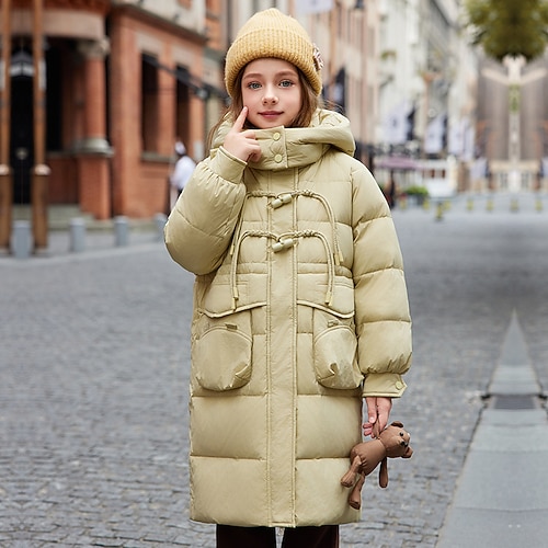 Kinder Mädchen Daunenmantel Einfarbig Mode Fellbesatz Reißverschluss Tasche Schule Mantel Oberbekleidung 4-12 Jahre Winter Schwarz Rosa Rote