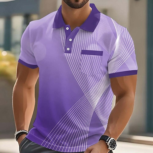 Herren Geometrisch Linie Poloshirts Kurzarm Polo-Shirts Hemden mit Kragen Lässig Outdoor Athleisure Alltagskleidung 3D-Druck Knöpfe Frühling Sommer Blau Rote Purpur