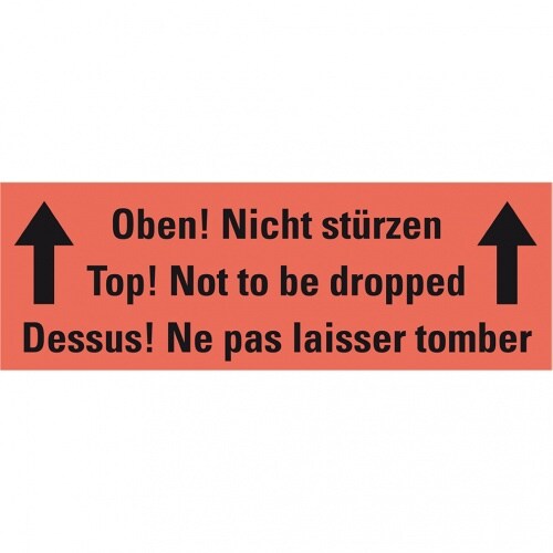 Dreifke® Hinweisetikett Oben! Nicht..., 3-spr., leuchtrot, Haftpapier, perm., 147x50mm, 250/RO