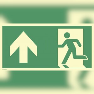 Notausgang links Pfeil oben, ISO 7010, Folie, nachl., 160-mcd, 297x148 mm