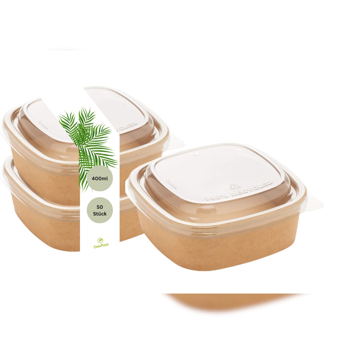 DeinPack 50 Salatschale mit PET Deckel braun eckig 400 ml