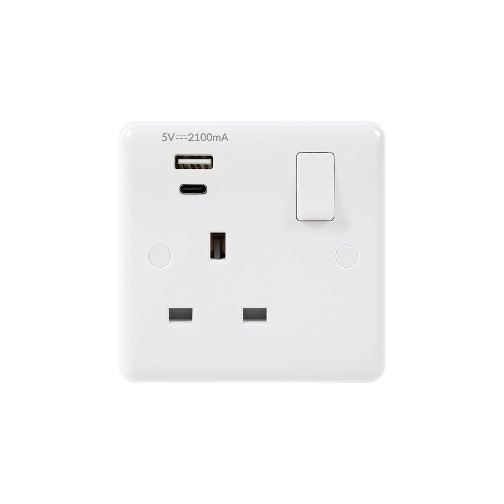 Lieber Silk White 1 Gang Single USB A+C Socket (1x 13A Socket with 1x USB-A and 1x USB-C)