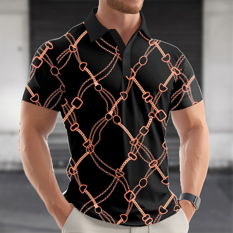 Men's Geometic Golf Polo Sports Polo Shirts Short Sleeve Polo Shirts Collared Shirts Casual Athleisure 3D Print Buttons Summer Blue Purple Orange