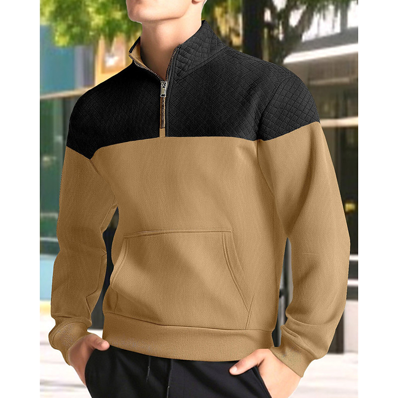 Men's Polo Polo Shirts Vacation Street Quarter Zip Long Sleeve Fashion Basic Color Block Patchwork Pocket Spring Fall Tailored Fit Black Army Green Navy Blue khaki Grey Polo
