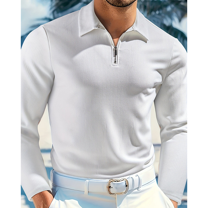 Men's Polo Polo Shirts Vacation Street Quarter Zip Long Sleeve Fashion Basic Color Block Spring Fall Tailored Fit White Polo