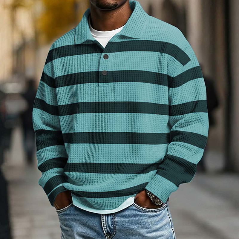 Men's Horizontal Stripes Waffle Polo Shirts Rugby Polo Long Sleeve Polo Shirts Lapel Sportswear Casual School Athleisure Daily Wear 3D Print Spring Fall Winter Blue Brown Green