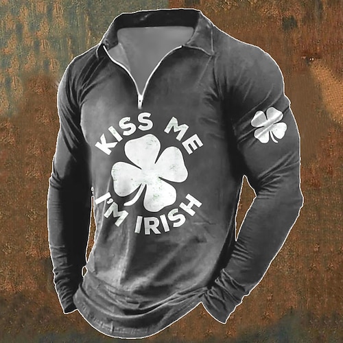 St. Patrick Herren Vierblättriges Kleeblatt St. Patrick Day Polo Poloshirts Reißverschluss-Polo Langarm Polo-Shirts Umlegekragen Reißverschluss Lässig Outdoor St.Patrick's Day Alltagstauglich