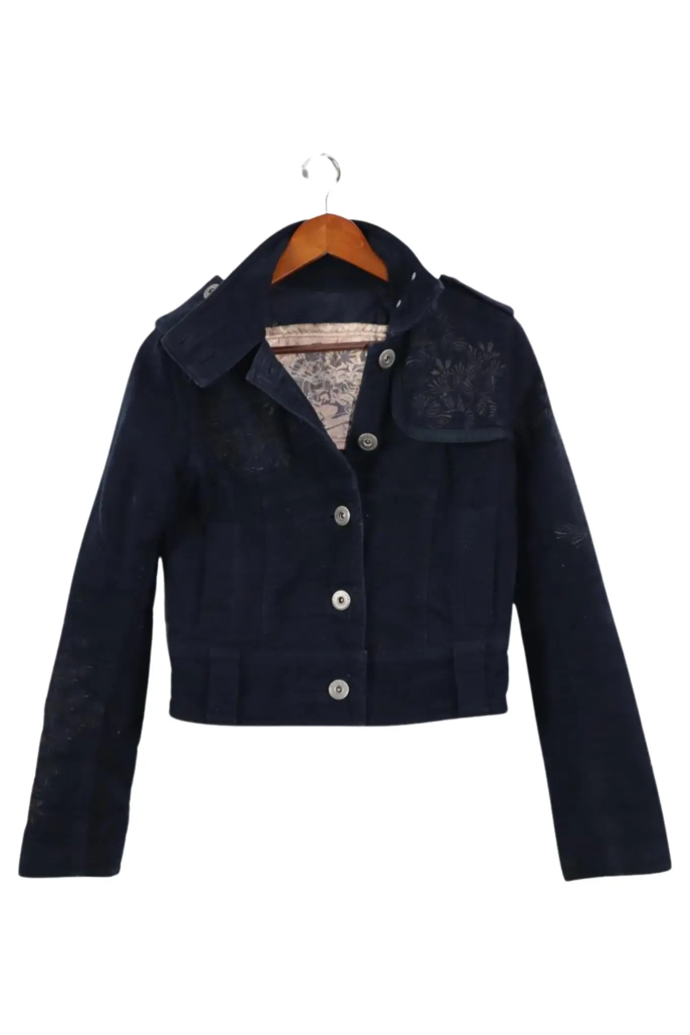 RIVER ISLAND Übergangsjacke Gr. 34 Blau Samt Stickerei