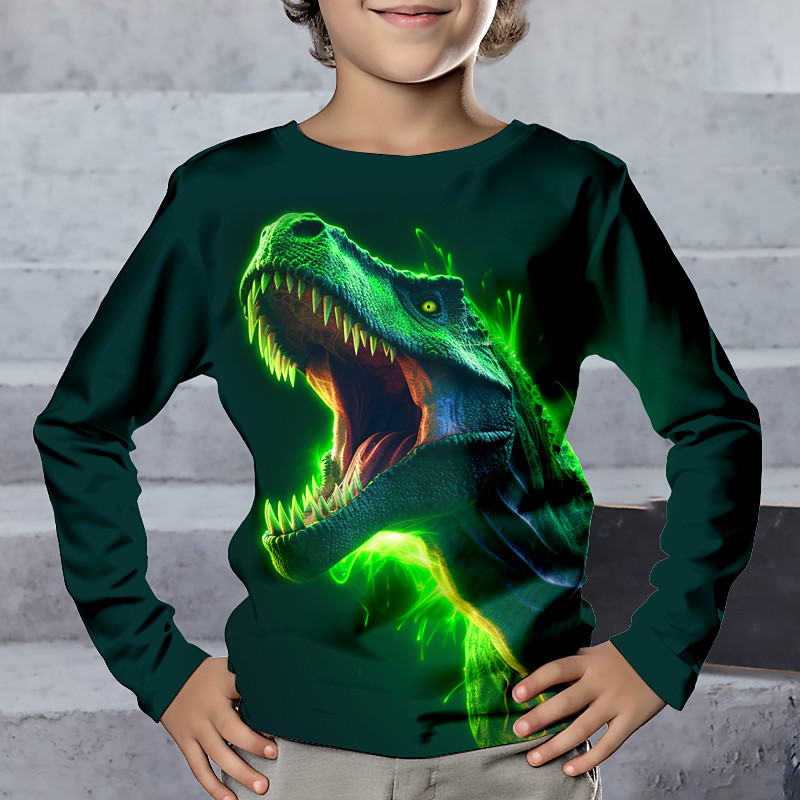 Boys 3D Dinosaur Tee Long Sleeve 3D Print Fall Winter Sports Fashion Streetwear Kids 3-12 Years Crew Neck Outdoor Casual Daily Regular Fit