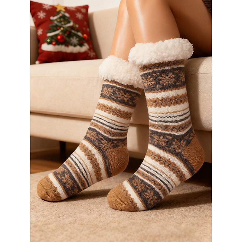 Women's Mardi Gras Fleece-Lined Non-Slip Floor Socks, Festive Striped Knit Carnival Style, Cozy Winter Warm Slipper Socks for Adults Teens, Perfect for Carnival Parties Holiday Home Wear