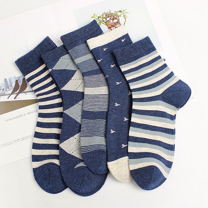 Men's 10 Pairs Multi Packs Socks Running Socks Casual Socks Blue Color Striped Vacation Sports Outdoor Daily Basic Medium Spring Fall Fashion Casual