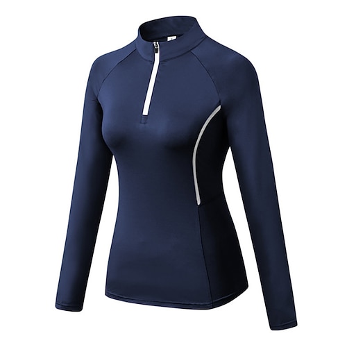 Per donna Camicia da allenamento Top Yoga Collo alla coreana Asciugatura Rapida Cerniera a un quarto Manica Lunga Gli sport Tinta unica Top Per Palestra Atletico Sportivo Abbigliamento sportivo