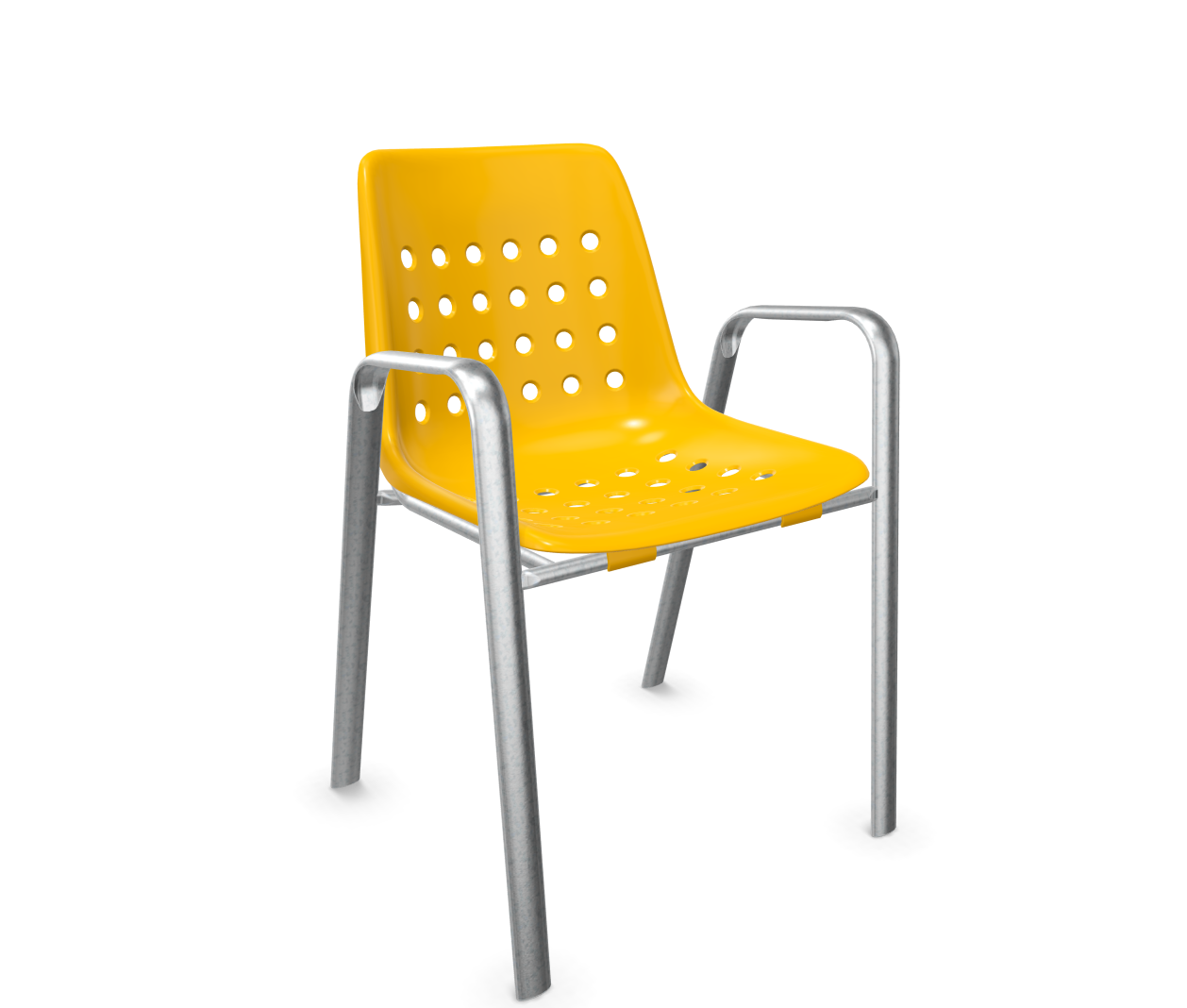 Schaffner Schalen-Stuhl Bermuda mit Armlehne Rundoval Feuerverzinkt Gelb | Schubiger Möbel