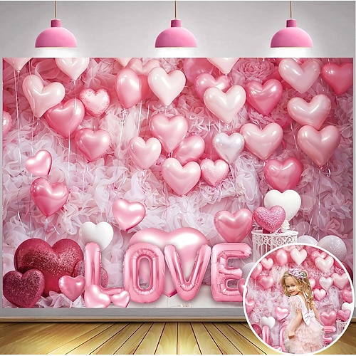 Arazzo da appendere a tema cuore rosa per San Valentino, design romantico con palloncini d'amore per decorazioni per feste, perfetto per festeggiare San Valentino e per decorare la casa