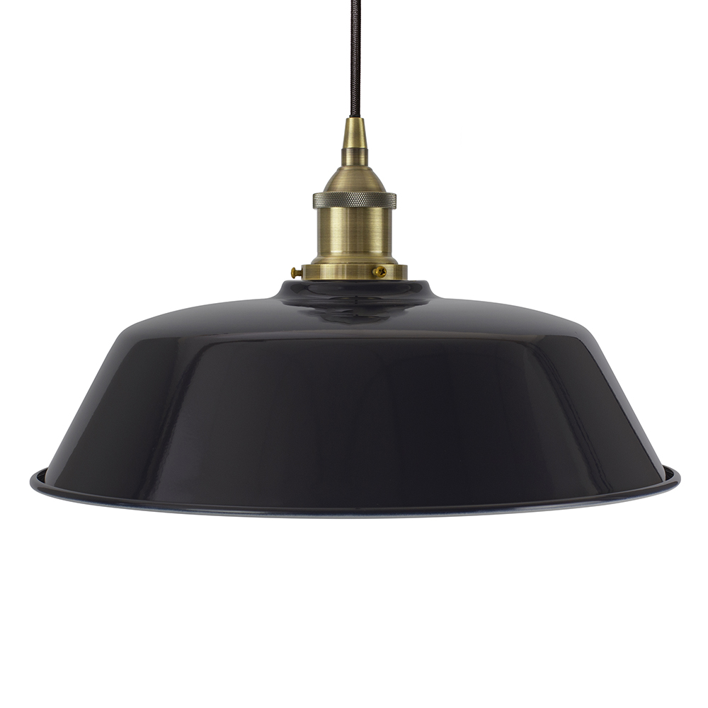 Soho Lighting Navy Blue Worcester Painted Pendant Light with Antique Gold Lamp Holder and Brown Twisted Cable
