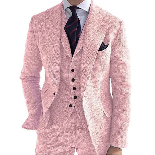 Per uomo BlazerGiletPantaloni eleganti Giacca blazer Affari Lavoro Feste Elegante Vintage Autunno Inverno Nylon Tinta unica Monopetto Giacca Argento Nero Rosa Borgogna
